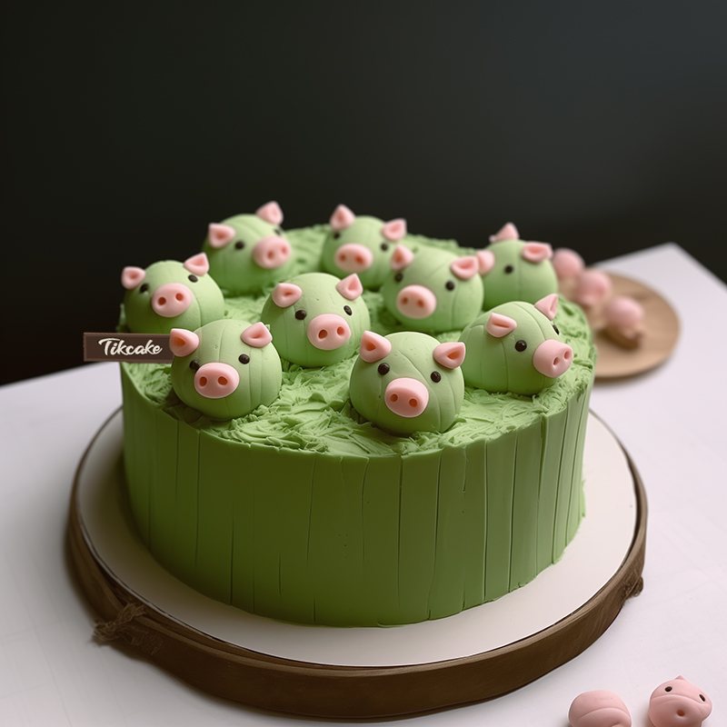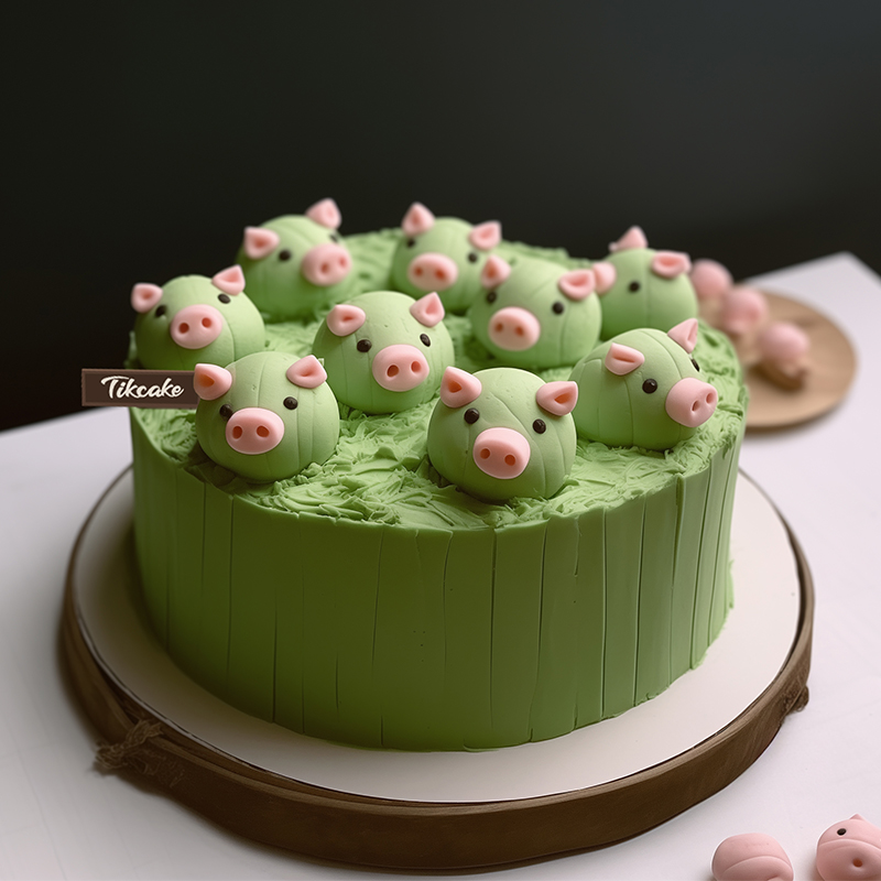 原创可爱小猪主题翻糖鲜奶蛋糕