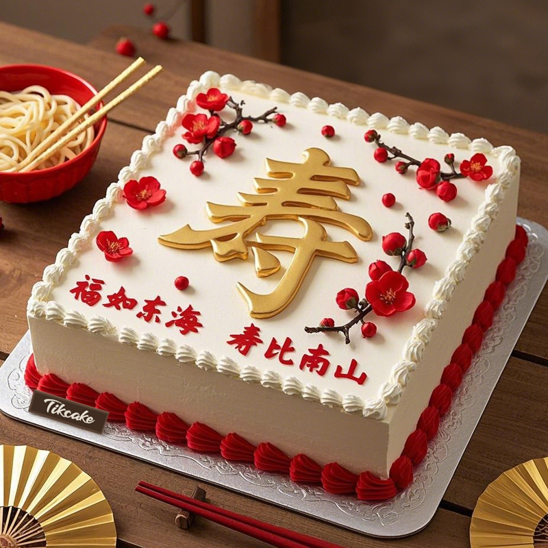 原创祝寿主题方形翻糖鲜奶蛋糕-澳门永利老网址登录入口