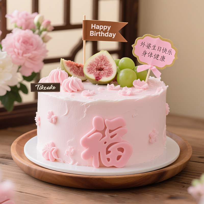 原创送长辈主题水果鲜奶蛋糕