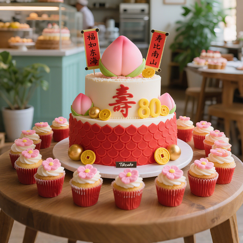 原创祝寿主题双层鲜奶蛋糕(含14个纸杯蛋糕)