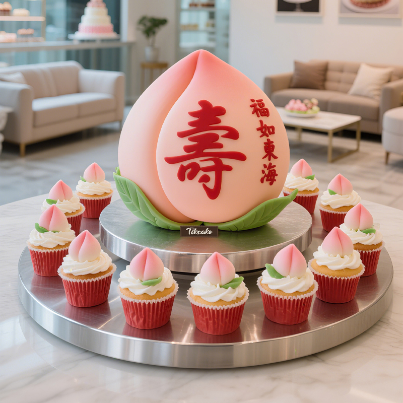 原创祝寿主题翻糖鲜奶蛋糕(含11个纸杯蛋糕)