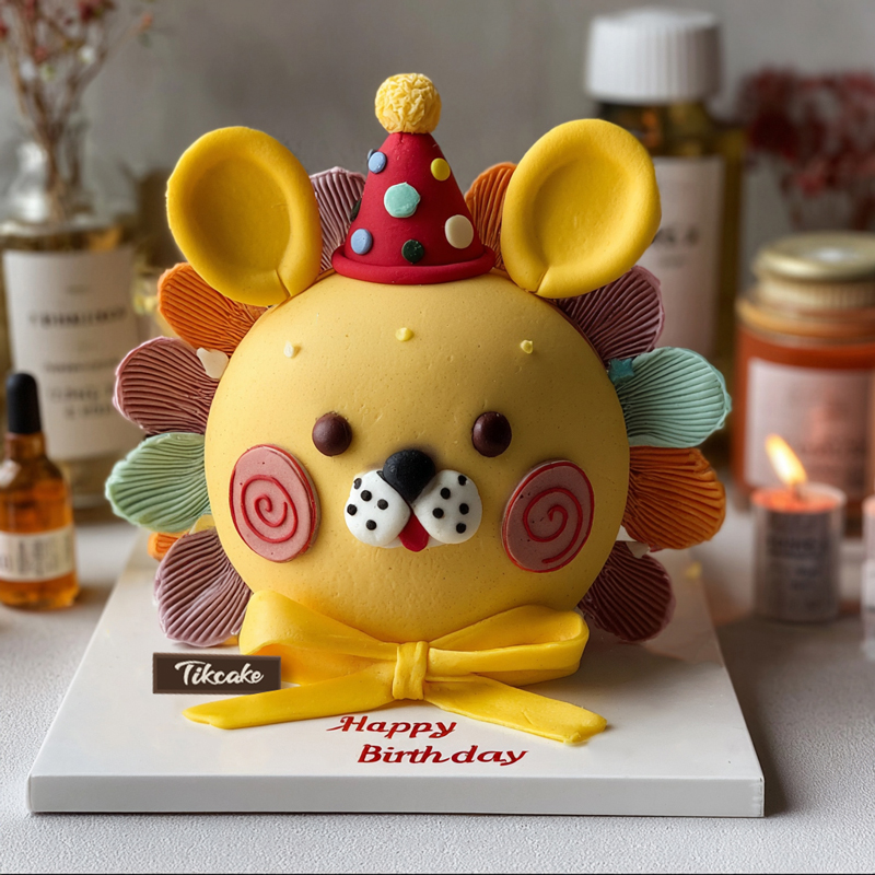 原创小狮子主题儿童翻糖鲜奶蛋糕