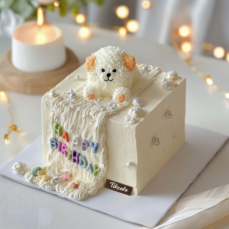 原创可爱小狗主题方形鲜奶蛋糕