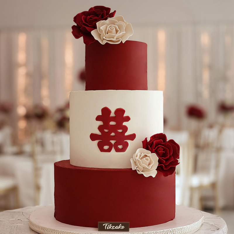 原创婚庆主题三层翻糖鲜奶蛋糕(二)