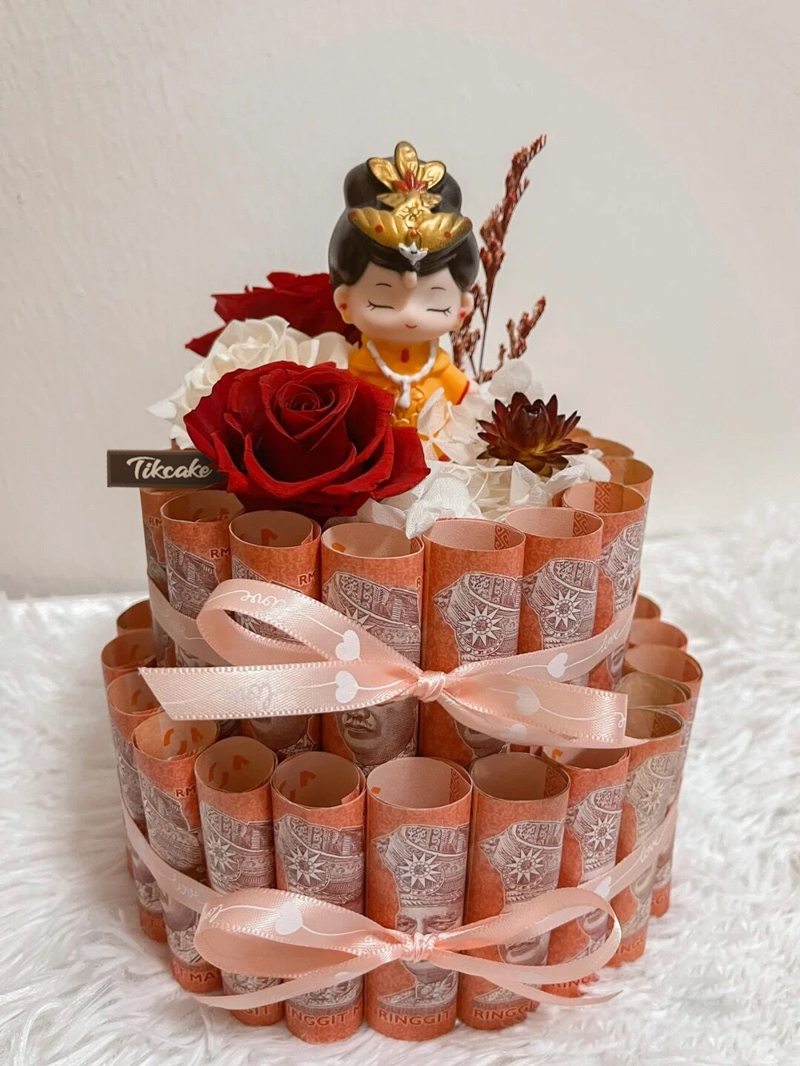 内层蛋糕胚 奶油叠加(含水果果肉),表层皇后摆件,鲜花,钱摆件等装饰(图中钞票为糯米纸装饰道具)注:摆件受当地材料影响,若无图上款式,将用类似的代替,介意者慎拍。
